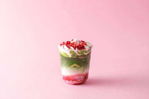 ATELIER MATCHA鎌倉で人気のMATCHAクリームいちごラテが登場。本格いちごピューレと宇治抹茶のカラフルでジューシーなおいしさをお楽しみください。
